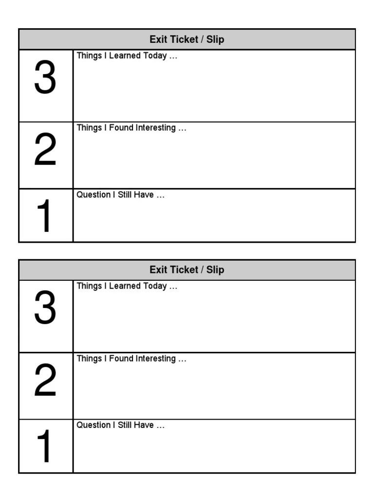 321 Exit Ticket - Write down 3 things you learned, 2 questions you still have, and 1 connection you'd like to. As a way to compare and contrast, have students record three similarities between. Web as an exit ticket at the end of the class period;