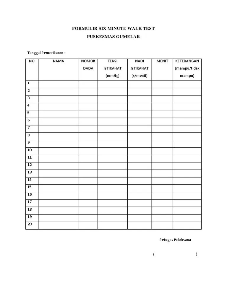 13 fitness evaluation form templates are collected for any of your needs. If the patient stops walking during the test and needs to rest, tell the patient that he/she can lean against the wall and can continue walking. Six minute walk test (6mwt) recording form (affix patient label here) patient id: It can also be used to track changes in.