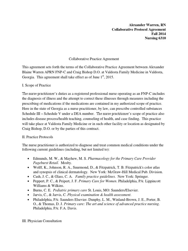 Nurse Practitioner Collaborative Agreement Template Form Fill Out and