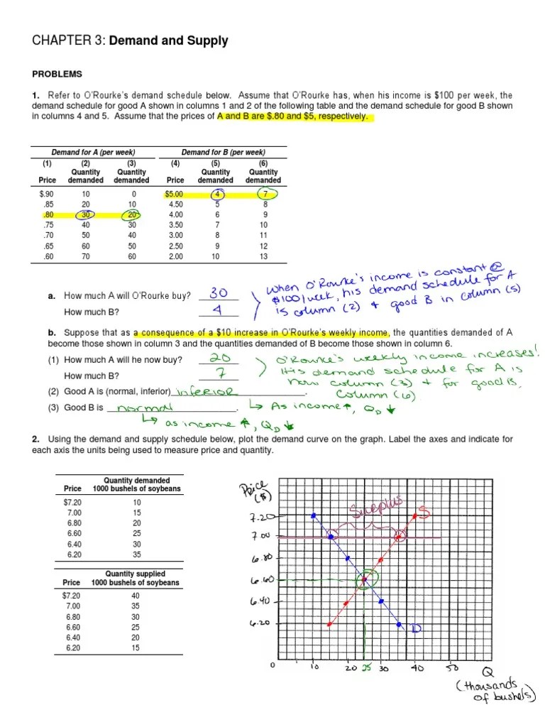 Worksheet KeyDemand, Supply & Market Equilibrium Demand Supply