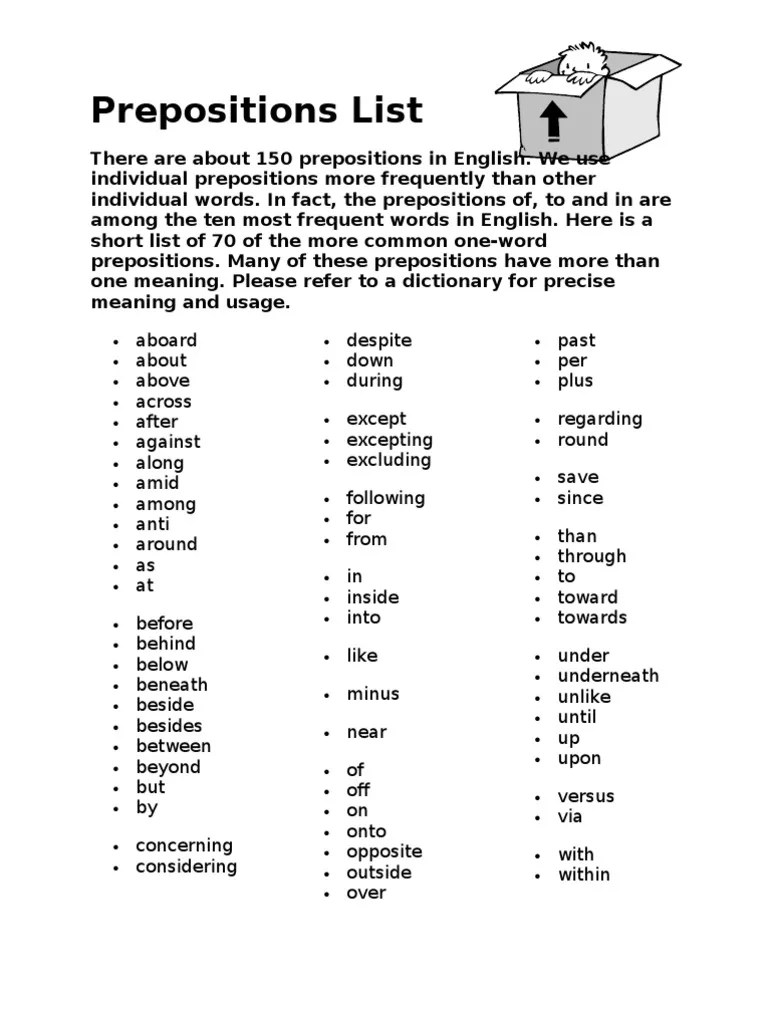 Web check out the list of materials that we use with these printables. A print preview page will open for you to set your options and print the. Web here is a list of 130 englishprepositions. Web this ebook contains a list of most english prepositions in use today.