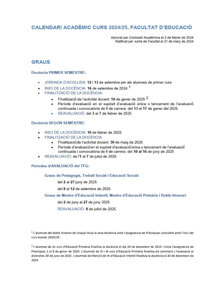 View the current academic calendar for undergraduate, graduate and pharmacy students. 5 september 2024 transició batxillerat course:
