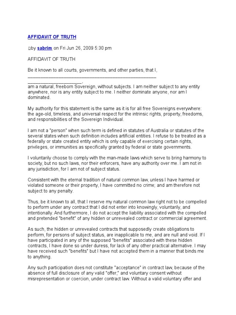 Web Into Affidavit Of Truth Has A Document Inches Which Somebody Customize Declares That He Is A “Sovereign Citizen” And Disavows The.