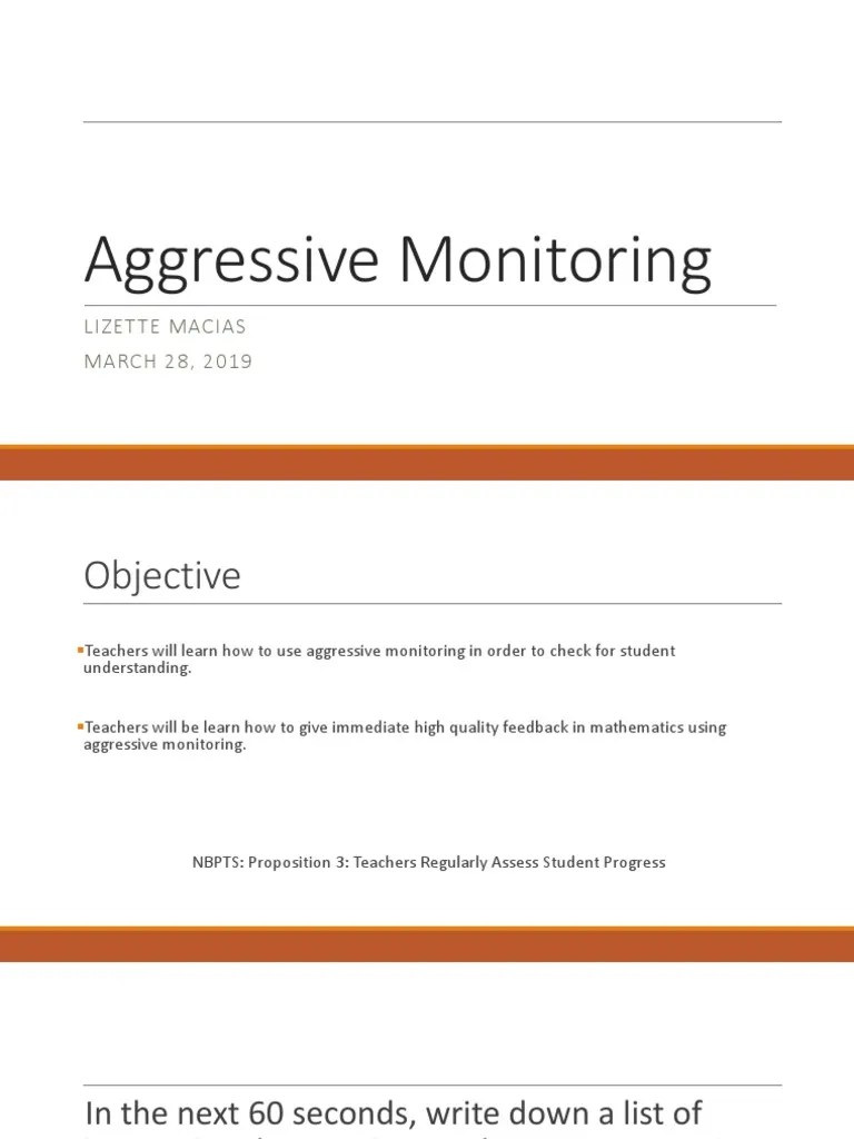 In this article, we will review the best practices for implementing strategic and aggressive active monitoring of your students. These videos talk through how teachers can conduct aggressive monitoring during their lessons. Aggressive monitoring, a technique outlined in doug lemov’s teach like a champion, creates conditions where you can sample independent performance and provide live feedback to students on their.