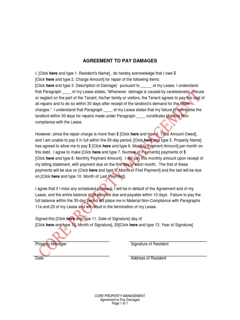 In this article, we will share a variety of templates, examples, and samples of agreement letter to pay for to car. User(s) agrees to pay for any and all damages of whatever origin or nature, which may occur to the ballfield, or any parts thereof, as a direct result. Start with our professional template and tailor to your needs. The.