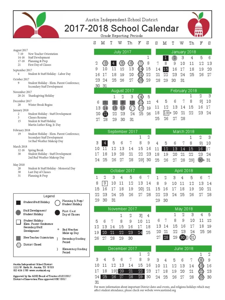 AISD Calendar 20172018 PDF Public Holiday Seasons