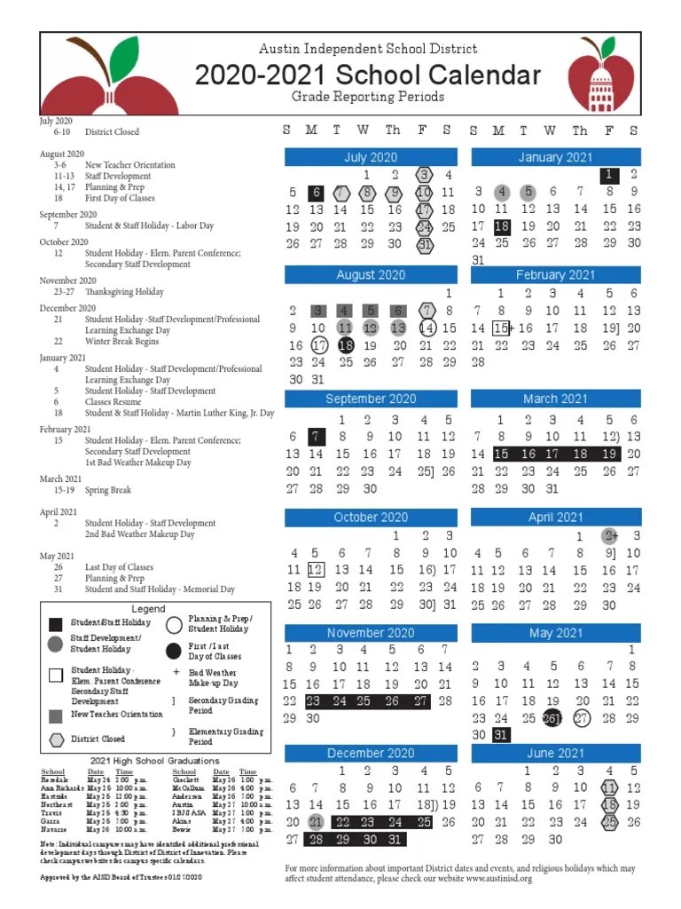 Take a look at Austin ISD’s newly approved calendar for the 202122