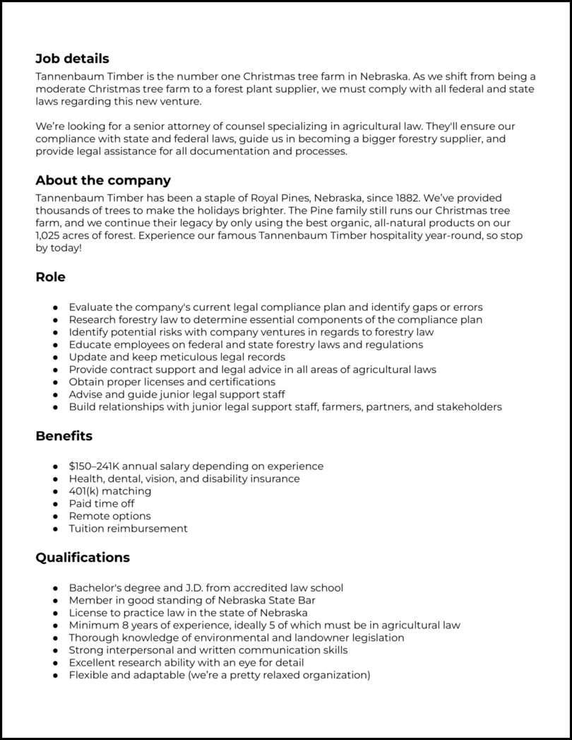 Today, we present a customizable attorney job description template, designed for effortless posting on job boards or career sites. Find the perfect attorney for your firm with our job description template. Let’s delve right into it. Are you looking to hire an attorney?
