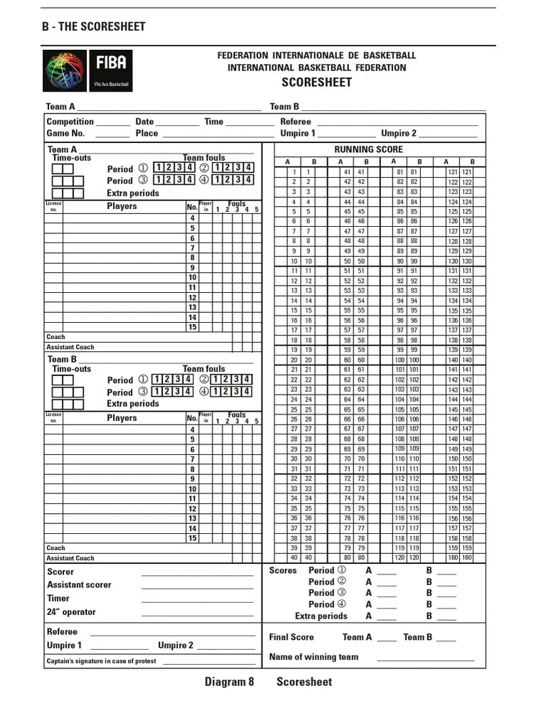 A free basketball score sheet template that allows you to easily keep track of points, fouls, and other game statistics. Knowing this, we’ve designed unique basketball scoresheets to help any league keep track of points, rebounds, field goals, free throws, and potentially other stats, you’ll want a fillable and printable basketball score sheet. This basketball score sheet has room for.