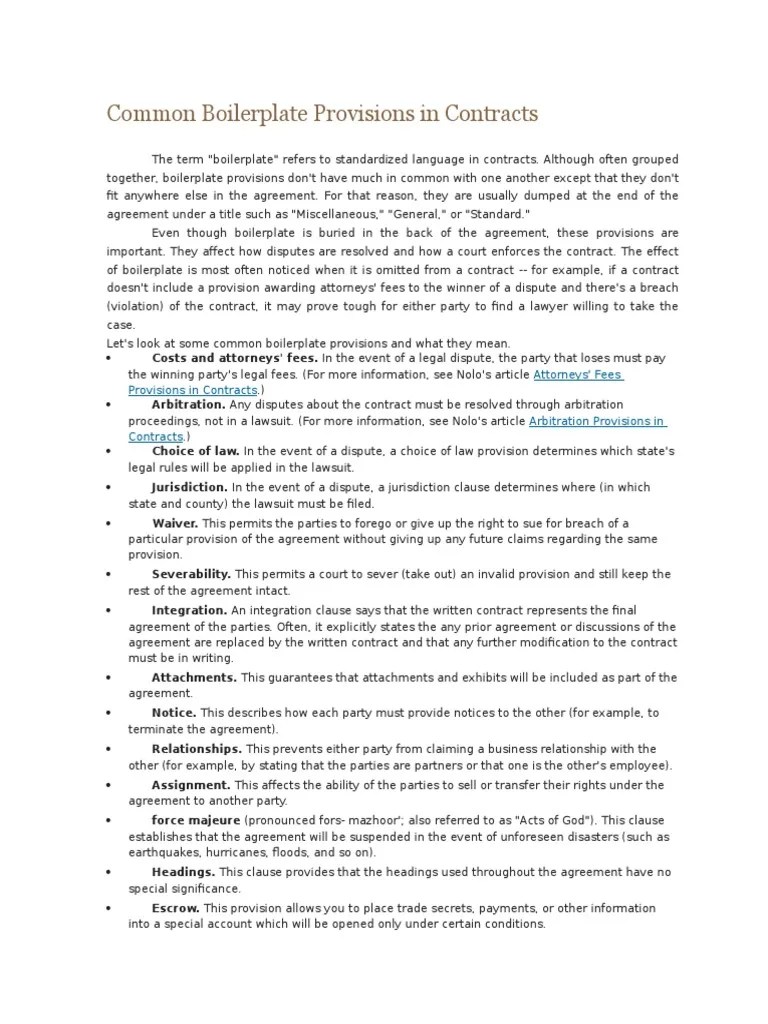 Common Boilerplate Provisions in Contracts PDF Attorney's Fee