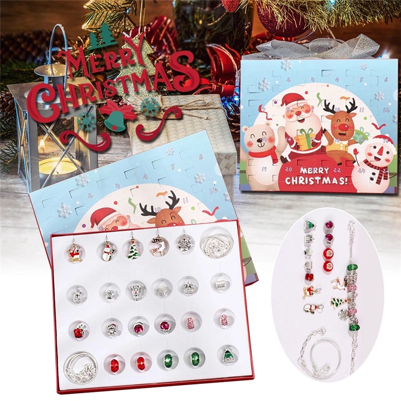 24 Days Christmas Advent Calendar Blind Box DIY Charm Bracelet Set
