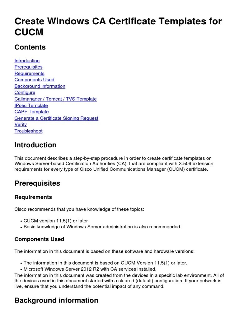 Create Windows CA Certificate Templates for CUCM PDF Public Key