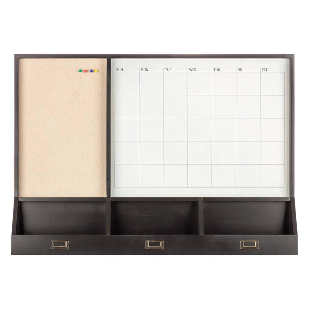 Fabric Pinboard & Monthly Calendar Wall Organizer with Storage Cubbies
