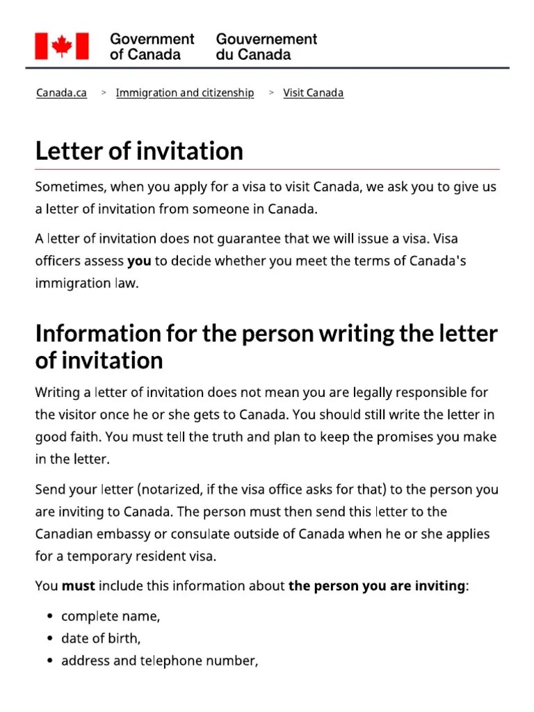 Sometimes, When You Apply For A Visa To Visit Canada, We Ask You To Give Us A Letter Of Invitation From Someone In Canada.