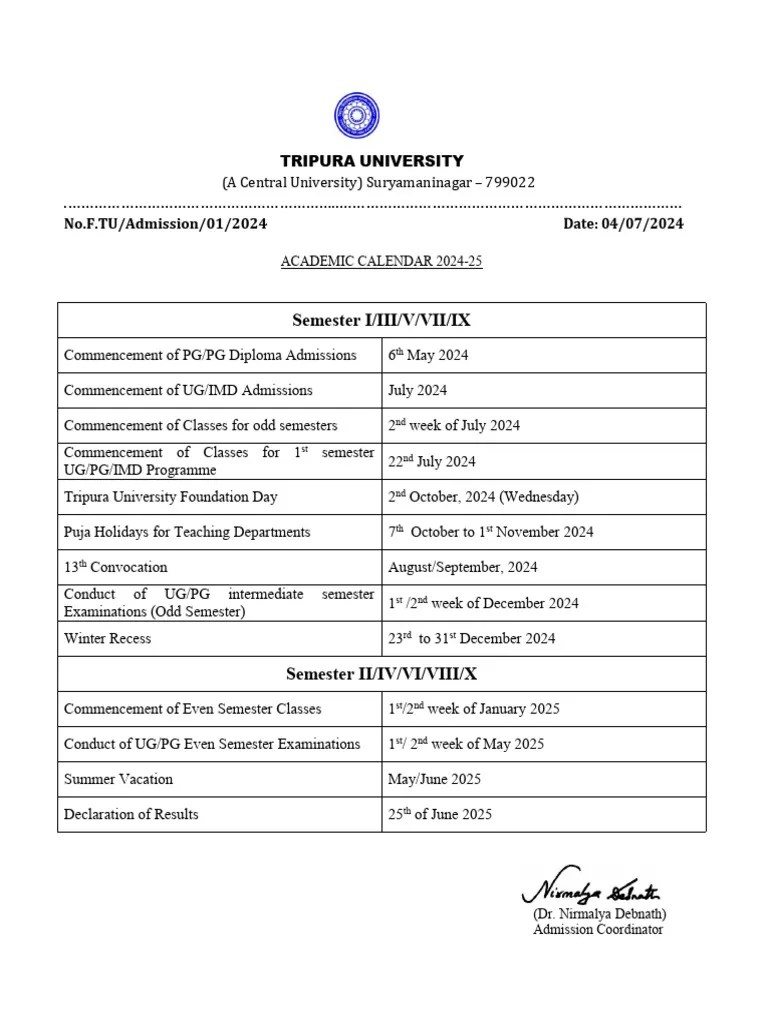 Academic Calendar 202425 Nit Jamshedpur Nerti Phillida