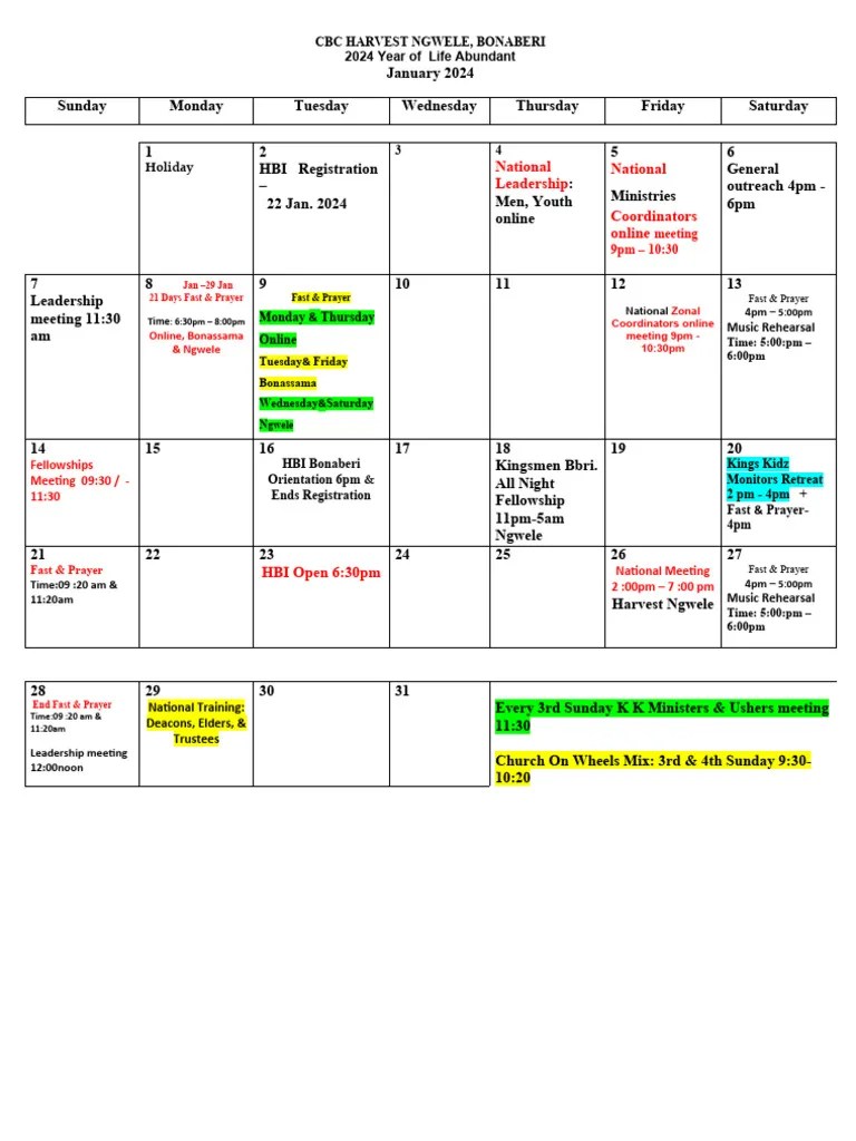 January 2024 Calendar CBC Harvest Ngwele PDF