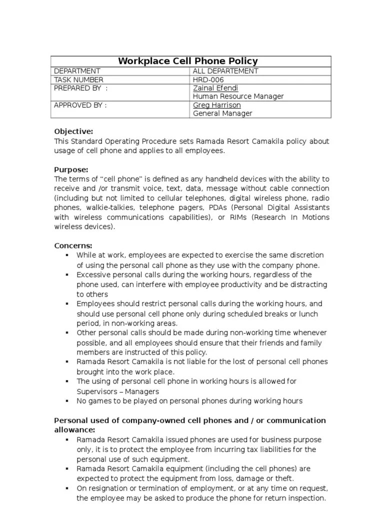 To help you create an effective cell phone policy for your workplace, a free downloadable template is available. 178.9 kb ) for free. Transform your company's communication standards with our essential employee cell phone policy template. Learn how to write yours here. Although we recognise that for many.