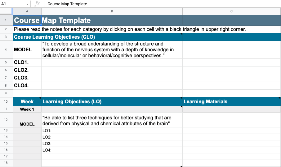 Learn how to use a course map template to design your online course using backward design. Use the course mapping guide and worksheet to determine your learning goals for each week and start selecting the activities that help students. Have you ever wondered what a course map is or looks like? View a course mapping guide graphic.