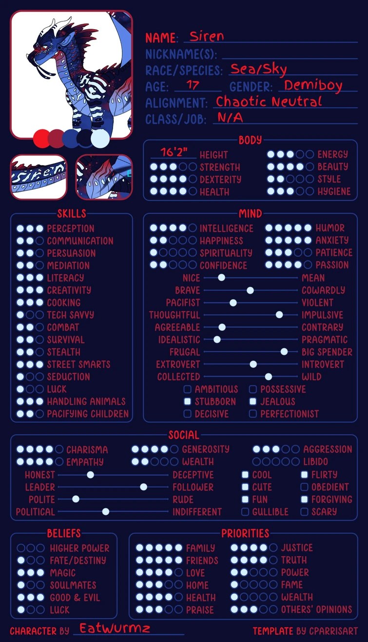 Details reference sheet viewing full image. Credits 21 jan 2023, 6:26:44 am. Make character sheet by cparrisart memes or upload your own images to make custom memes Use it to flesh out the personality of your oc/fursona. Please respect the original maker of the template cparrisart.