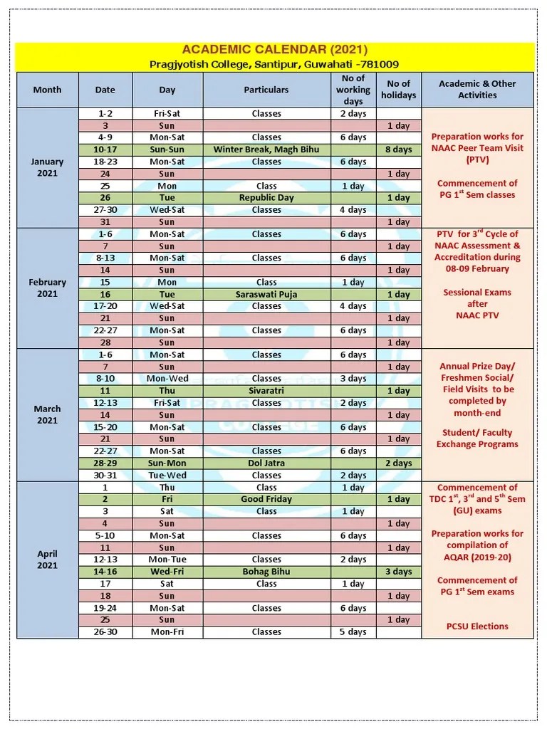 The college reserves the right to modify the academic calendar. Changes will be communicated to students.