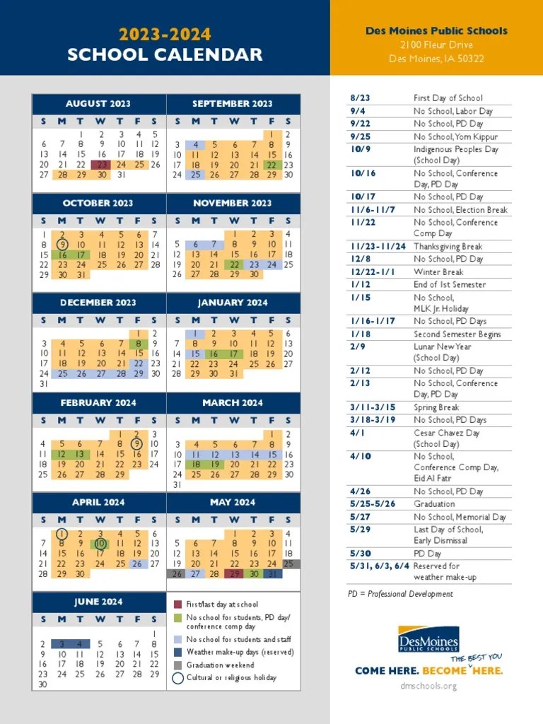 Below are links to resources to help you navigate the school year: Below are links to resources to help you navigate the school year: With more than 31,000 students and nearly 5,000 employees, there are a lot of stories to tell about the work and accomplishments that take place each day at des moines public schools. Including holidays, team schedules.