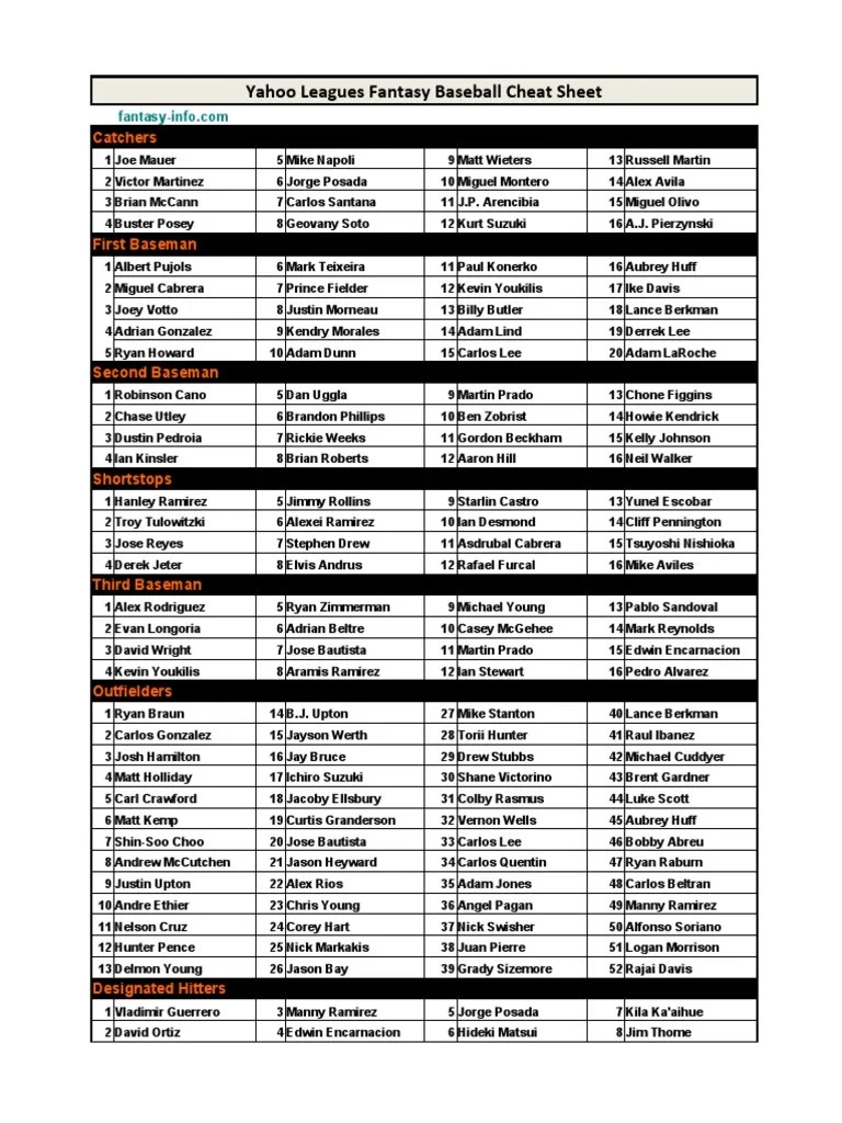 Download The Ultimate Fantasy Baseball Cheat Sheet For Your Draft, Updated Throughout Spring Training.