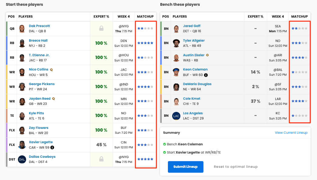 Analyze your team’s weekly matchup with detailed statistics and projections. Combine rankings from 100+ experts into one. A matchup calendar helps owners spot difficult fantasy matchups for each week of the season. Strength of schedule is important tool in the arsenal of serious fantasy football drafters. Fantasypros aggregates and rates fantasy football and fantasy baseball advice from 100+ experts.
