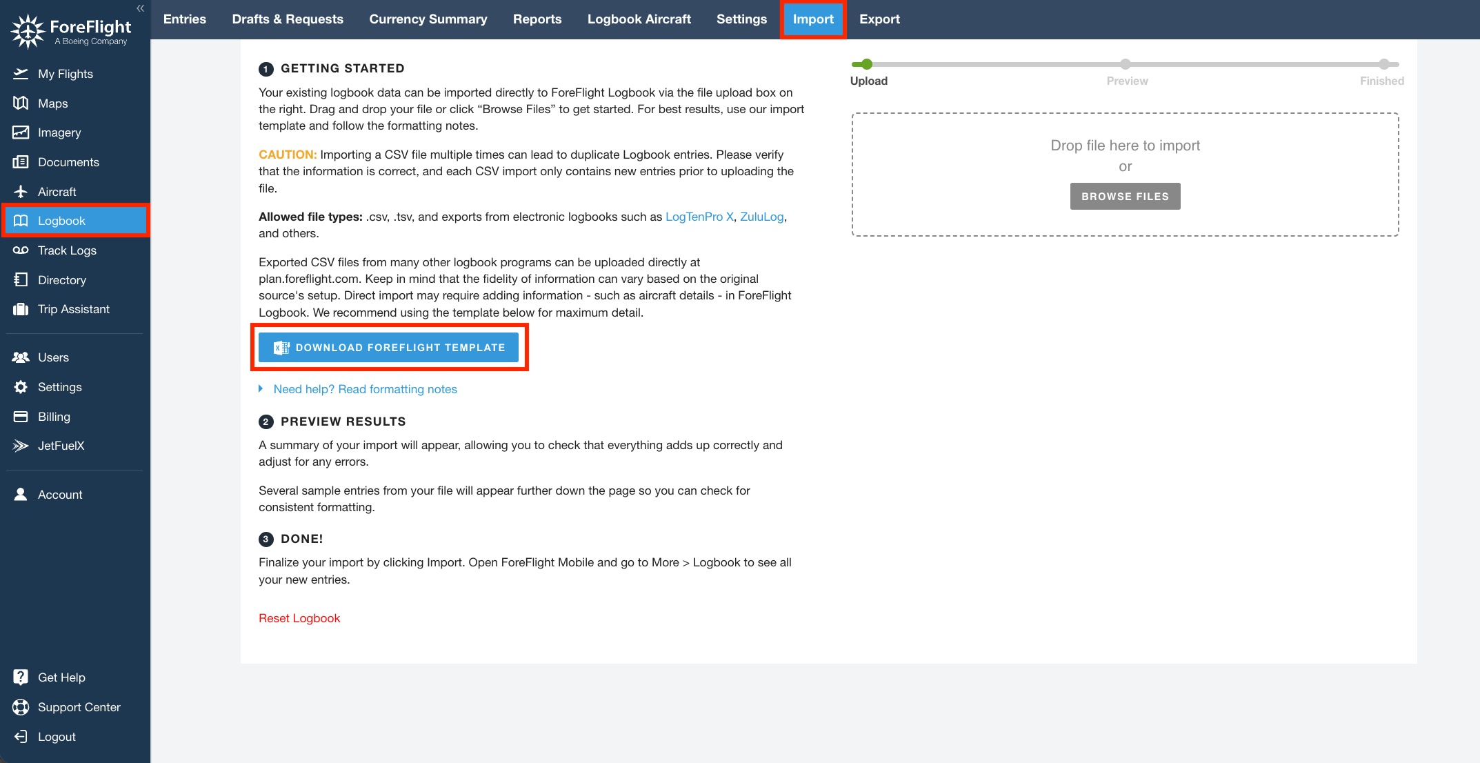 Foreflight provides a logbook template that, when filled out, offers a reliable means for. In this article, we'll explore five. Create a customized foreflight logbook excel. Learn how to efficiently import, organize, and. To import a logbook, the logbook file must be in either csv or tsv file format.