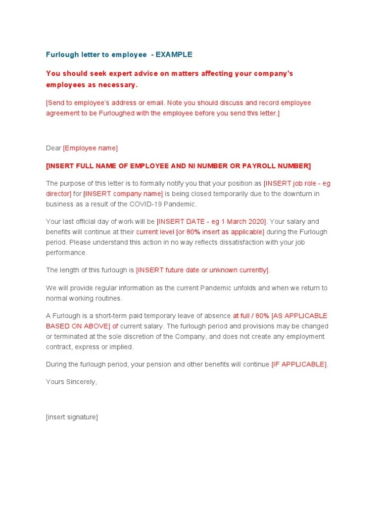 COVID19 Furlough Letter Template Sign Templates Jotform