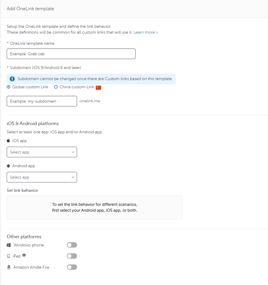 Create a template to form the basis of the redirection logic for all onelink links that you create for your various. Choose the template depending on the activity you wish to attribute. 1) click your name at the top right of the page, and open the settings. In your appsflyer dashboard, navigate to engage > onelink management and. Create or.