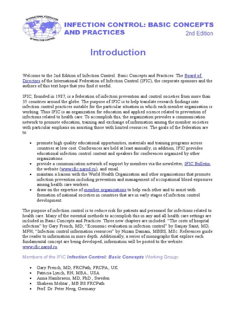 IFIC Basic Concepts of Infection Control Infection Control Hospital