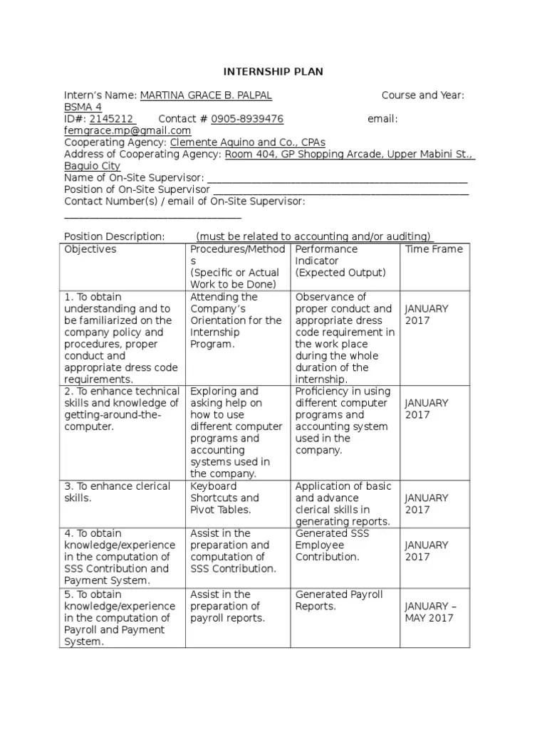 Web 14+ internship plan templates in doc | pdf. Web each training/internship placement plan should cover a definite period of time and should consist of definite phases of training or tasks performed with a specific. ☐ main campus | ☐ arizona online | ☐ distance term: Students completing an internship abroad are required to register their travel with ua study.