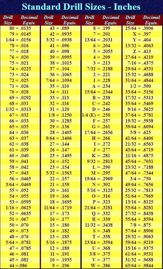 Web A Good Drill Size Chart Can Also Be Used As A Handy Decimal Equivalence Chart As Well As To Convert Decimal Sizes To Metric.