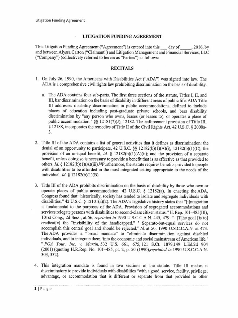 Litigation Management Services Funding Agreement
