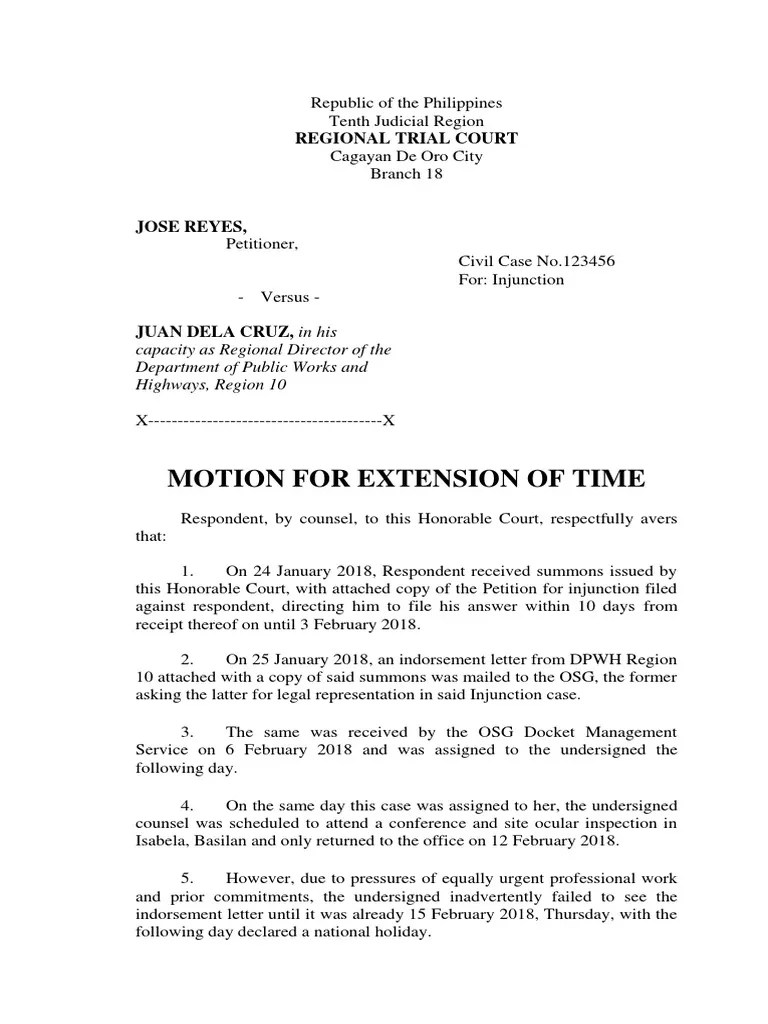 Motion For Extension of Time Regional Trial Court PDF Separation