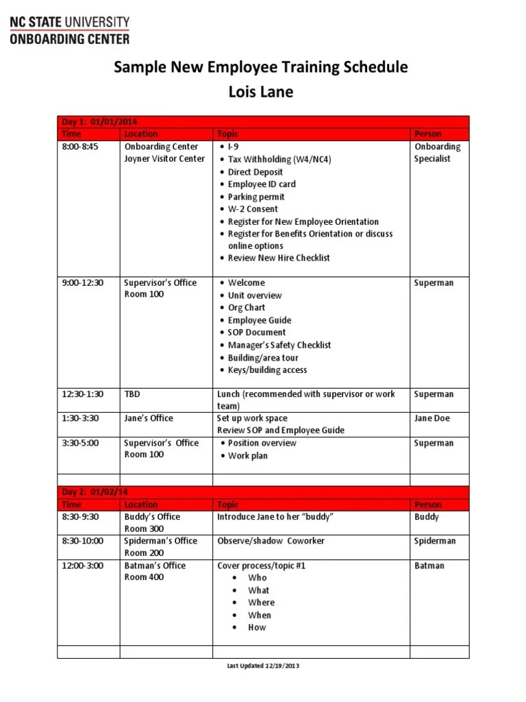 Sample New Employee Training Schedule PDF Business