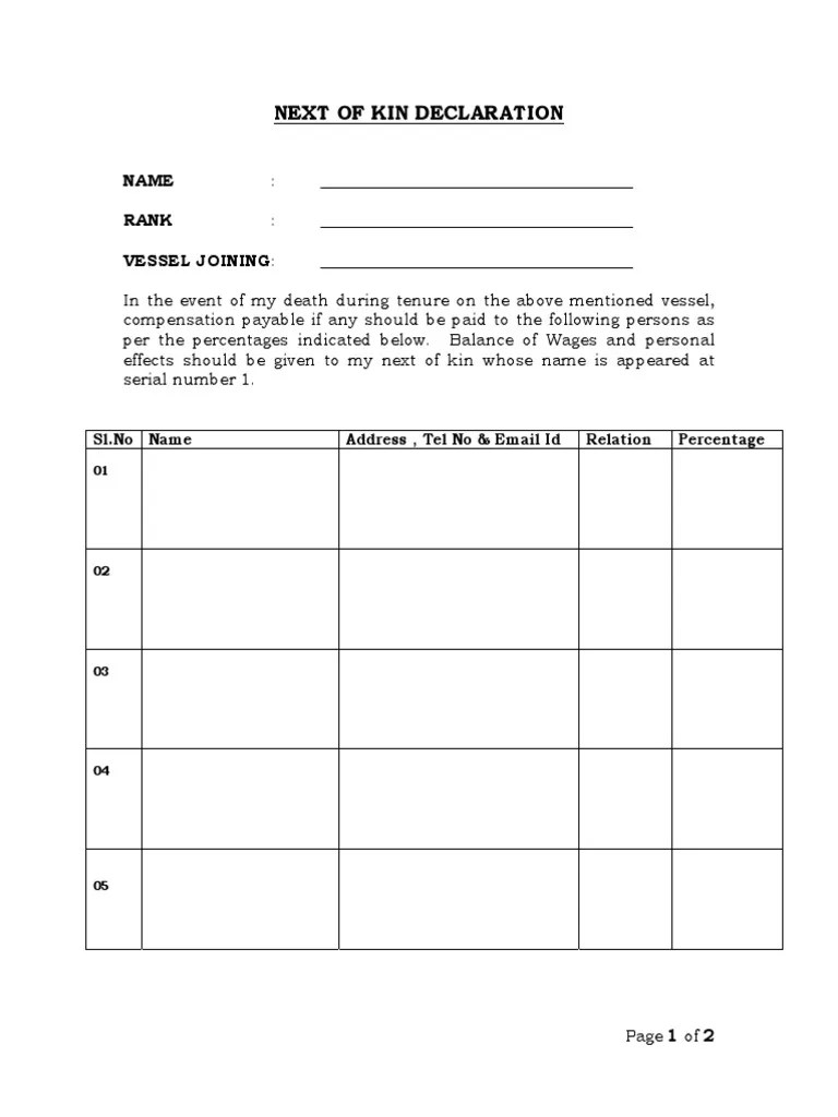 Printable Next Of Kin Form Template Printable Forms Free Online