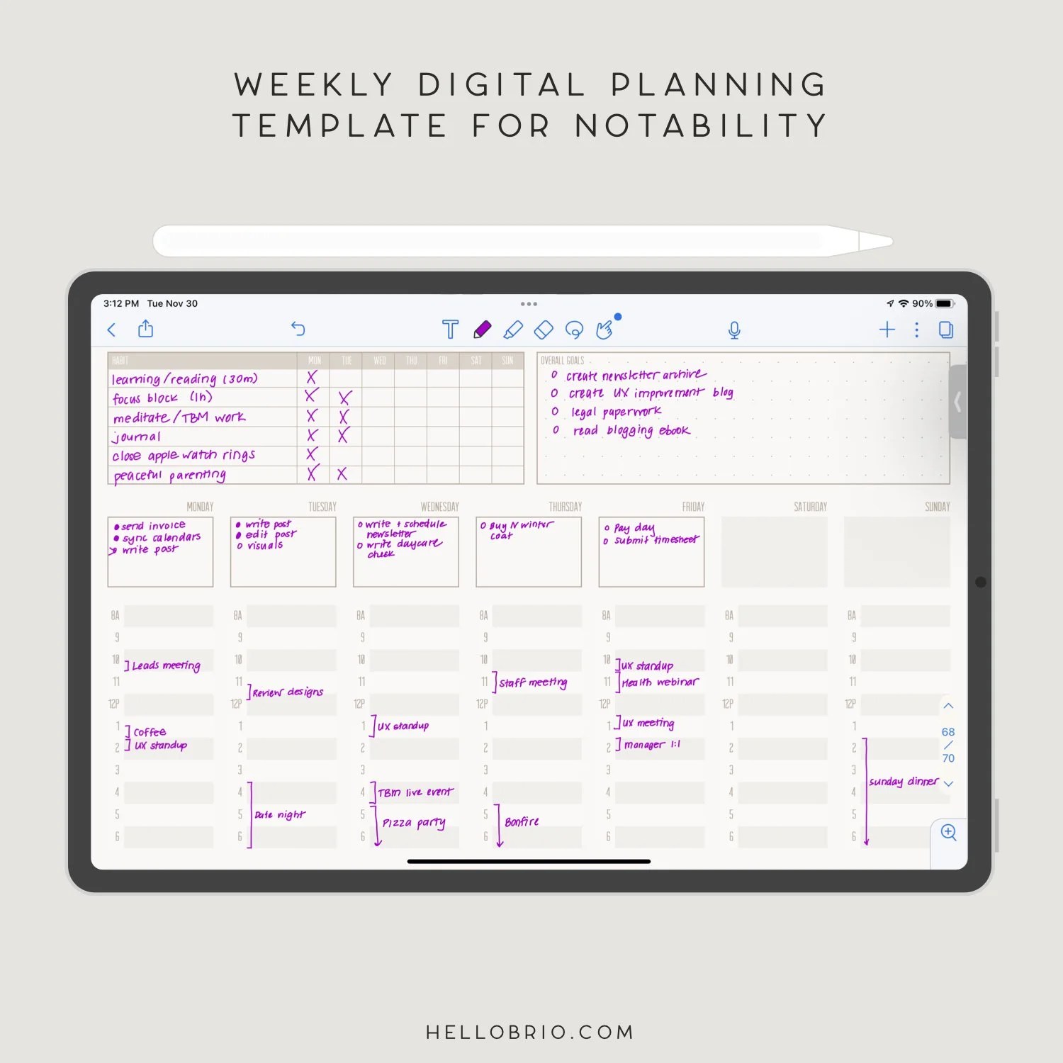 Digital planning with a weekly template for Notability on iPad — Hello Brio