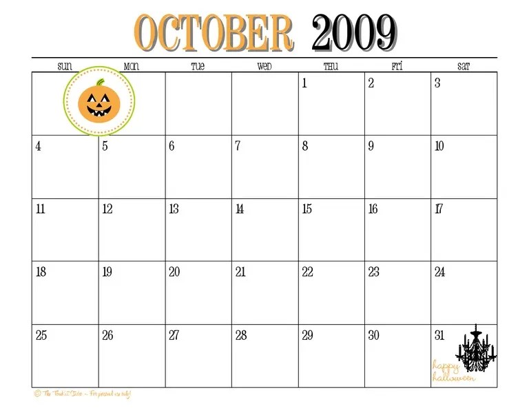 Download Or Print Free October 2009 Calendars In Pdf, Word, Or Excel Format.
