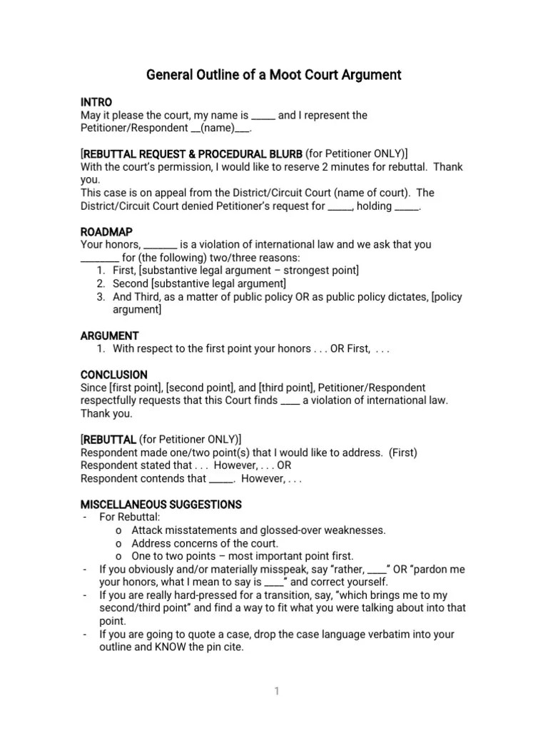 Web oral argument outline : You are “on” from the moment the panel has the opportunity to. 9 elements of successful oral arguments. Web a single stray statement could mean, for your client, the difference between victory and defeat—and, for yourself, the difference between a promising. If you rely on an outline too much, you will be thrown off by questions and may repeat information or. Web an effective oral argument in both trial and appellate courts. Web tips for moot court tryouts: The guide helps you understand oral argument’s purposes, how to prepare for and structure your oral. Last week, the first post in this series covered seven preparation steps for moot court. • oral arguments start when the panel enters the room (or you enter the room).
