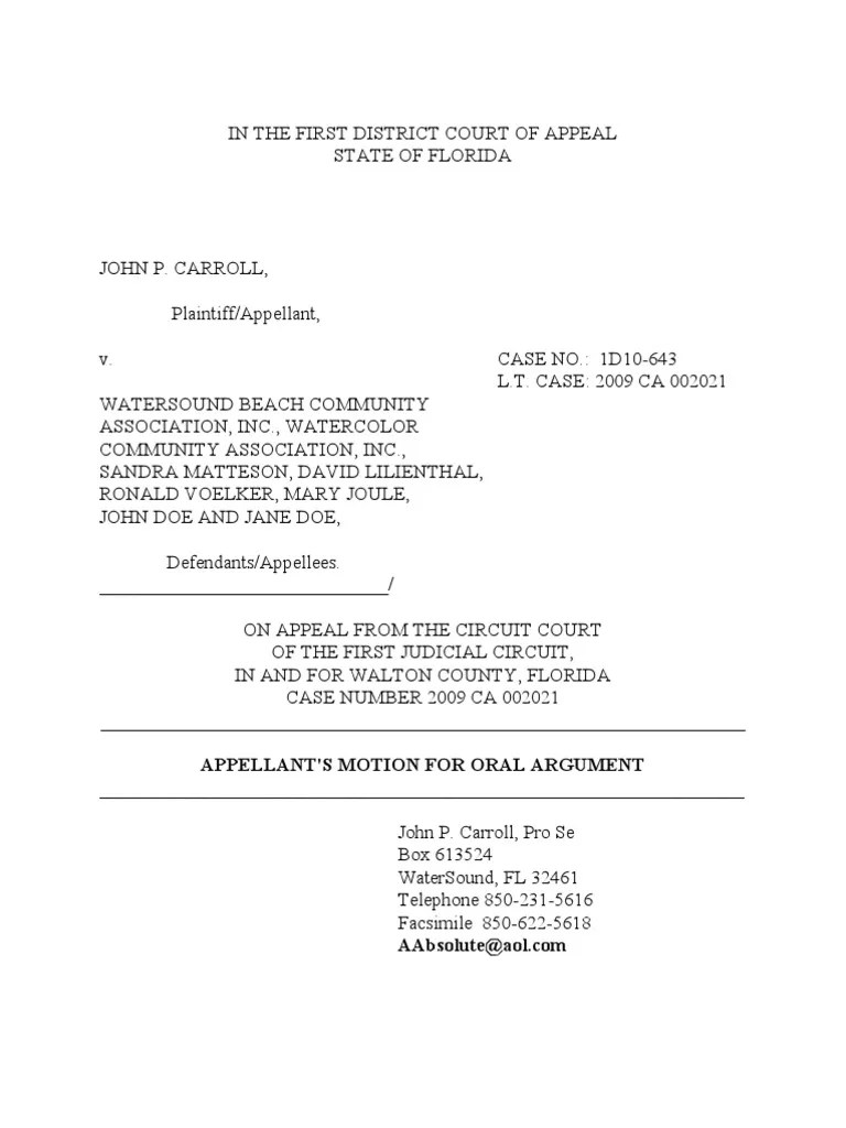 Appellants Motion for Oral Argument Pro Se Legal Representation In