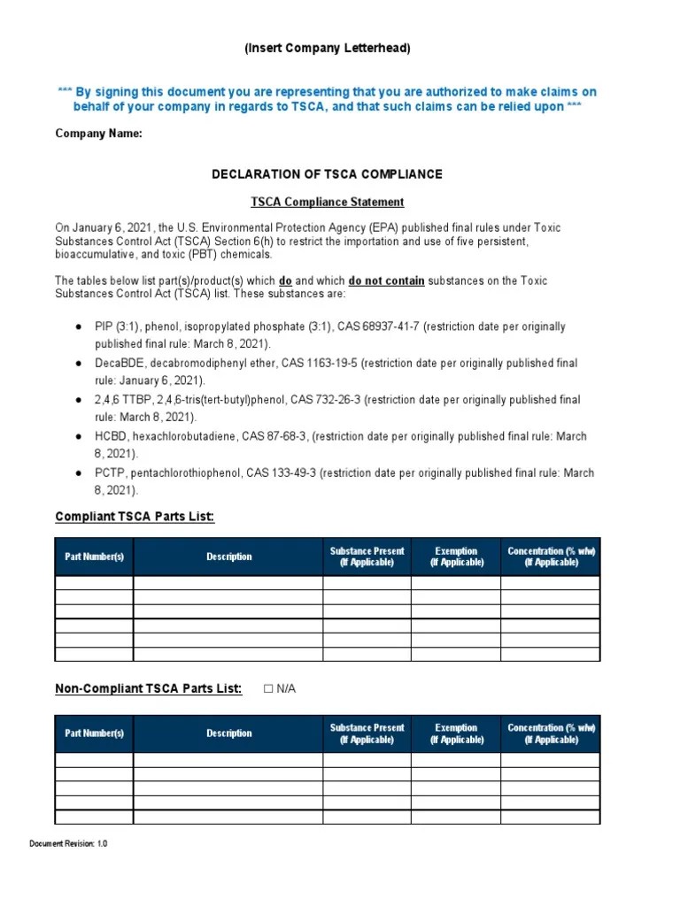 TSCA PFAS Declaration Template PDF Chemical Substances