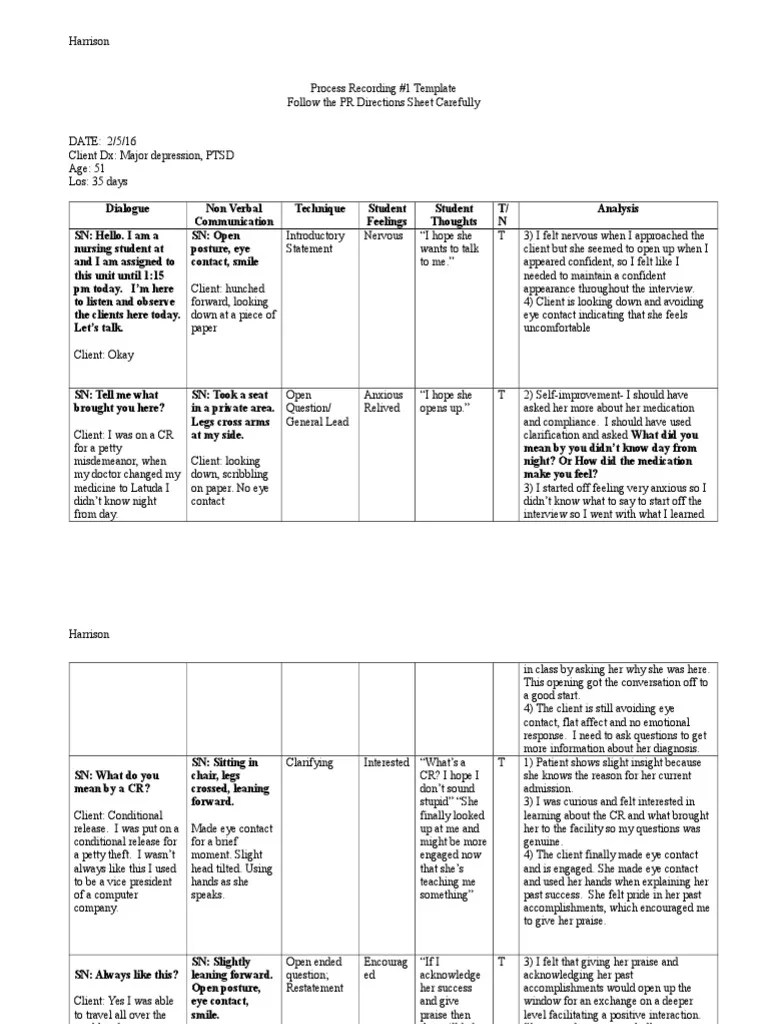 Typically when a student is practicing on a micro level this takes. Learn how to write process recordings of your interactions with clients in social work practice. This handbook provides an overview of process. What was happening just prior to this interaction? Each answer should be about three or four sentences.