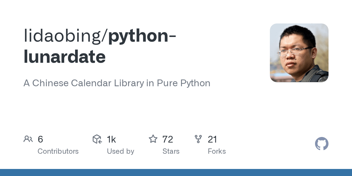 GitHub lidaobing/pythonlunardate A Chinese Calendar Library in Pure