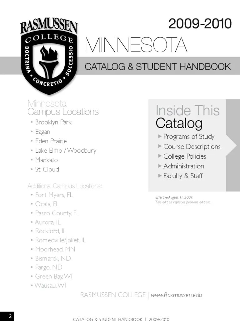 Rasmussen College Minnesota Campuses Course Catalog 2009 Loans