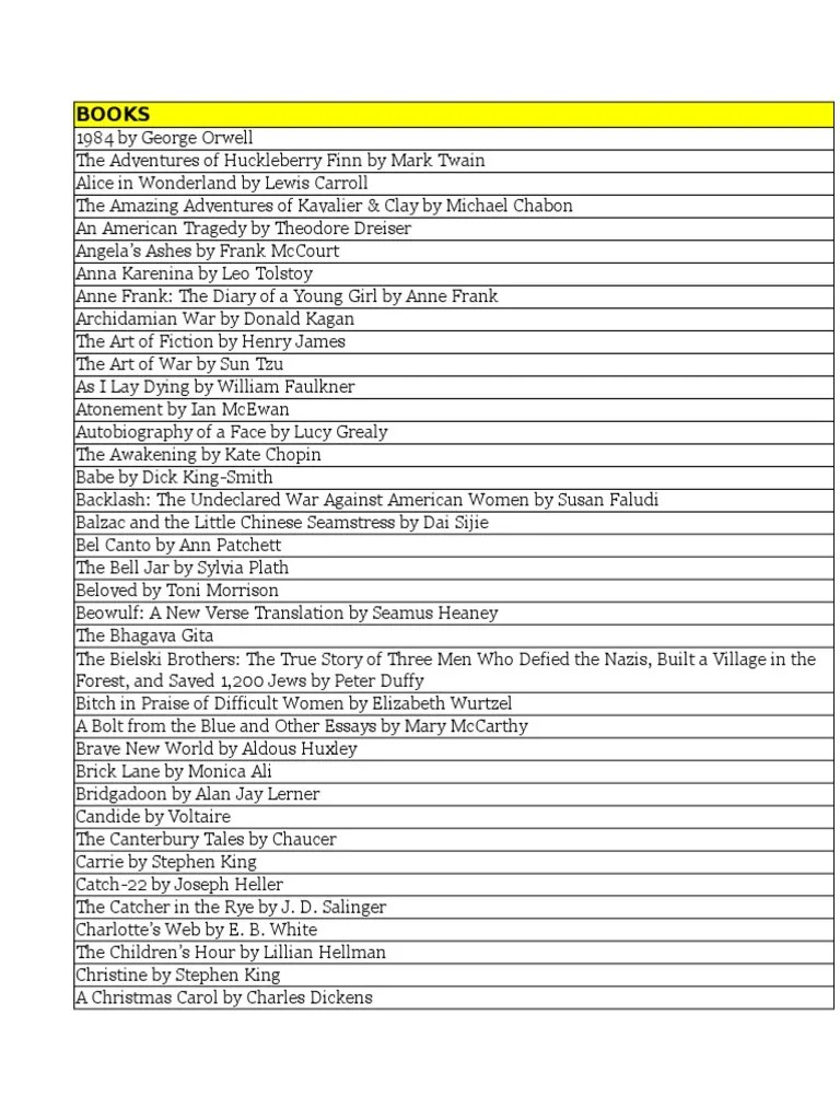 Just lists that don’t offer more help, tools, and automation to make doing this challenge. Enter your email here to download. Web 1984 by george orwell. The adventures of huckleberry finn by mark twain.