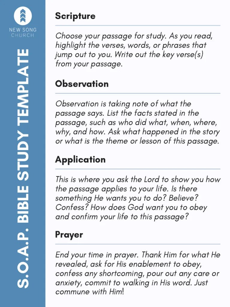 When it comes to studying the bible the soap. Soap bible study method is an interactive way to grow more from your bible study. It is a great way to help you dive deeper into the word of god and i hope you love it. Download a free soap bible study template with study sheets, observation, and application questions to.