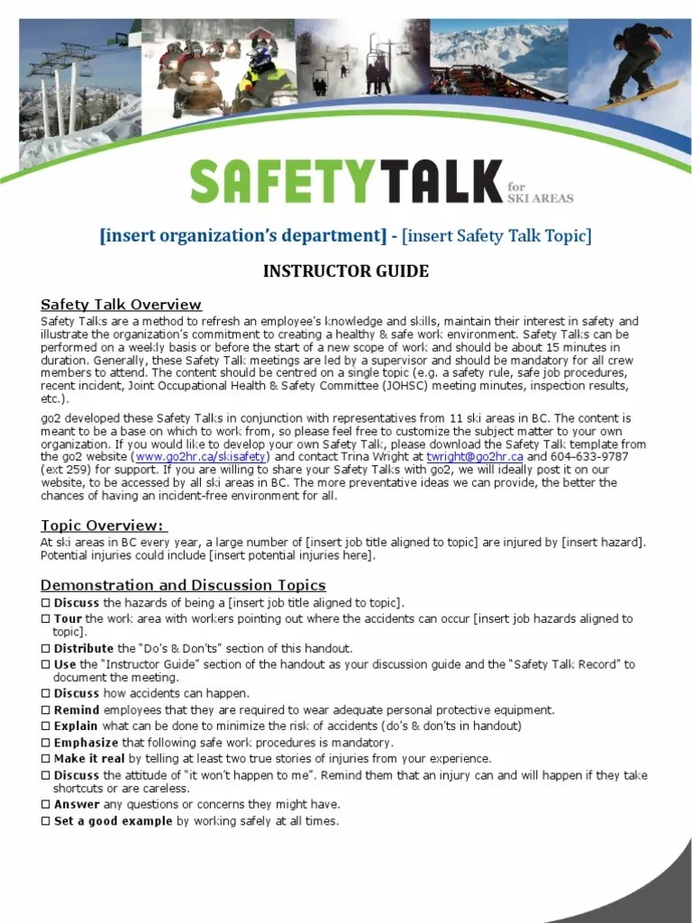 Free Printable Safety Talks Printable World Holiday