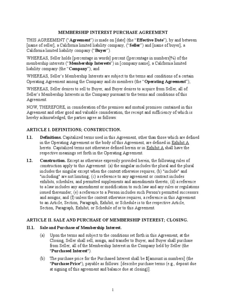 Sale Of Membership Interest In Llc Template