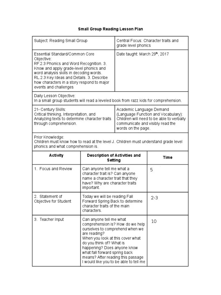Use this small group lesson plan to help students develop their decoding and phonics skills. The lesson plan includes all components of a science of reading lesson, with a brief explanation of each. Small group planning for structured literacy intervention lessons is easy with this lesson planning template. Learn the research and how to. This pdf provides an overview of.